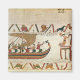 Aqui Earl Harold, da Escola Francesa (c.1022-66), retorna à Inglaterra, detalhado da Tapeçaria Bayeux, antes de 1082 (bordado de lã sobre linho) localizado na Musee de la Tapisserie, Bayeux, França. O aqui Earl Harold (c.1022-66) retorna à Inglaterra, detalhe da tapeçaria Bayeux, antes de 1082 (bordado de lã sobre linho) foi criado por volta do século 11.
