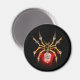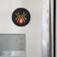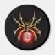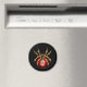 Aranha mecânica, com pá-pá de ouro, engrenagens de latão e uma lâmpada de vidro vermelha sobre fundo preto. Estilo Steampunk.
