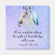 Uma inspiração motivacional tribo indígena arapaho/provérbio nativo americano que diz: Se nos perguntarmos com frequência, a dádiva do conhecimento virá. O design é criado com uma imagem aquosa de quatro penas suaves e delicadas de aparência, somadas penduradas na borda superior. O fundo é uma textura azul-impermeável de aquarela.