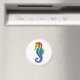 Articulação artificial, brilhante, arco-íris, cavalo de mar poligonal sobre fundo branco. Tatuagem brilhante.