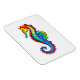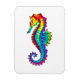 Articulação artificial, brilhante, arco-íris, cavalo de mar poligonal sobre fundo branco. Tatuagem brilhante.