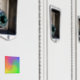 Aqui está um ímã colorido com um padrão arco-íris espiral abstrato girando em torno de um alvo central em cores verde, azul, amarelo, laranja e vermelho. Pode ser usado no contexto da LGBT.
