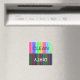 Um design contemporâneo em listras brilhantes e maçantes do arco-íris, por avisar a todos se os pratos da máquina de lavar louça estão limpos ou sujos.
