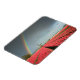 Íman retangular de souvenir com um arco-íris colorido num céu escuro sobre um moinho de vento e um cheio de campo de tulipas vermelhas brilhantes durante uma tempestade de primavera numa paisagem perto de Amesterdã, nos Países Baixos.