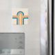 A ilustração com estilo retrorativo com decoração colorida (amarelo, azul, laranja, azul marinho, bege, turquesa) sobre fundo bege. Você pode adicionar seu nome/monograma para personalizar o item.