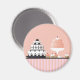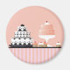 A arte cakes numa toalha de mesa listrada que parece simplesmente deliciosa. Um ímã muito bonito.