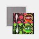 IMÃ ART DECO PARROS, VERMELHAS FLORES VERMELHAS SUJAS