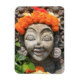 Detalhe da estátua esculpida balinesa com decoração floral colorida em Ubud, Bali