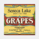 Ilustração antiga de rótulo de caixa de frutas, anúncio com duas pencas de uvas em vermelho e roxo. Publicidade retrô para uvas do lago Seneca. Concord, embalado para Harry W. Hall, Himrod, Nova York. Usado para caixas de colheita de uvas nos primeiros anos da indústria de vinho e uva de Finger Lakes, NY.