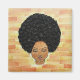 Arte do botão originalmente criada na canvas usando tinta a cor da água, tinta carimbada, botões e miçangas. Usei aquarelas metálicas para o fundo. O rosto foi criado com um selo e marcadores. Botões e miçangas foram usados para criar um estilo afro.