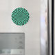 Um design de estilo Op Art circular, com dois tons, que é composto por círculos de raios, cada um deles deslocado para criar um padrão alternado.
