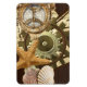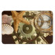 Um design náutico náutico divertido. As engrenagens, uma bússola náutica, o peixe-estrela, as conchas e a safra escrevendo sobre fundo de madeira.