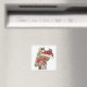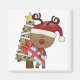 A rena de Rudy veste um boné de meia vermelho e branco do papai noel enquanto pôr presentes abaixo da árvore de Natal decorada do feriado sobre t-shirt da árvore do feriado da rena de Rudy, hoodies, canecas, cartões, etiquetas, sacolas, ímãs, chaveiro, ornamento, travesseiros, e outros roupa e presentes do feriado.