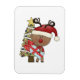 A rena de Rudy veste um boné de meia vermelho e branco do papai noel enquanto pôr presentes abaixo da árvore de Natal decorada do feriado sobre t-shirt da árvore do feriado da rena de Rudy, hoodies, canecas, cartões, etiquetas, sacolas, ímãs, chaveiro, ornamento, travesseiros, e outros roupa e presentes do feriado.