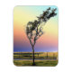 Um design de arte de uma árvore solitária com um céu dramático e campos à distância.