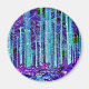 Um abstrato vibrante de árvores azuis, folhas roxas e mato.