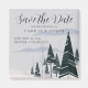 Uma bela cena de inverno de uma floresta cheia de neve de chuveiro verde escuro e abetos e um céu de cinza pálida decora esta Imã salve a data de férias. Este desenho moderno de uma paisagem natural nevada é perfeito para um convite de casamento de dezembro ou Janeiro da noite.