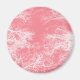 Árvores coloridas silhuetadas em branco contra um céu rosa