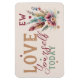 Passe um pouco de amor próprio no seu dia com este ímã fofo! Apresenta flores encantadoras e corações doces, além de um lembrete para ser gentil consigo mesmo: "Ame-se Hoje." Personalize com suas iniciais para um toque especial extra. Este ímã laminado de vinilo duradouro é perfeito para iluminar a sua geladeira, armário ou qualquer superfície magnética.