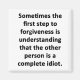 Entregue-se ao seu lado negro. Veja este sarcástico e espirituoso "Às vezes o primeiro passo para o perdão é entender a outra pessoa é um completo diota" design, canecas, mousépads, botões e outros presentes exclusivos. Para o amante sarcasmo em todos nós.