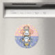 Feiticeiros com capas azuis e cor-de-rosa olhando para bolas de magia de cristal. Fundo com lua e estrelas. Campos de texto personalizados para placas Clean and Diirty.