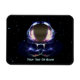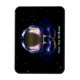 Uma imagem fractal azul e roxa que se assemelha ao capacete e ombros de um astronauta em um fundo estrelado. Adicione seu próprio texto.