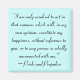 Grave seu dia com as palavras imortais de Jane Austen, uma verdadeira amante da palavra escrita. Essa design, totalmente personalizável, apresenta a citação de seu romance Regência "Orgulho e Preconceito", "Só estou decidido a agir dessa forma, que, na minha opinião, constituirá a minha felicidade, sem referência a você, ou a qualquer pessoa tão desligada de mim''.