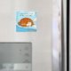 Ilustração colorida do gato dormindo em uma cama. Parte da série de ímãs Thru The Cat Flap.