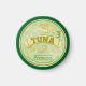 Uma ilustração do estilo pop da tampa de uma lata de atum. Este é desenhado em vetor e tem a aparência de um poster de publicidade retrógrada. Tem atum e é desenhado em tempos de verde e amarelo. Um design para qualquer um que ama peixe enlatado/conservado.