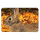Foto maravilhosa da natureza de um adorável coelho selvagem em folhas vibrantes de queda de laranja num dia ensolarado de outono.