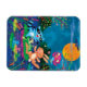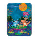 Artista: Elisa Chavarri | Racoon, coelho, sapo e coruja dançando no lago à noite com uma grande lua de outono sobre eles no céu
