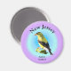 Uma imagem do Pássaro Estadual de Nova Jersey, o Goldfinch Oriental, com o nome do estado e o nome da ave