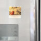 Aqui está um ímã com o Sr. e a Sra. Cardinal Norte. É o outono com uma folhagem gloriosa no fundo, mas a primeira neve caiu para nos dar uma prévia do inverno. Ele é uma cor vermelha brilhante. Ela é laranja, ouro e marrom. Ambos têm cristas e bicos de laranja. Eles são verdadeiramente a realeza dos pássaros do quintal com sua música distintiva e cores adoráveis.