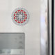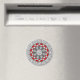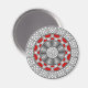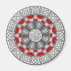 Um simples padrão geométrico por fora, inspirado em parte por designs astecas antigas, rodeia uma camada temática de alienígena, uma camada de gradiente e uma simples camada de preto neste design de círculo concêntrico.