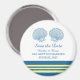 Conchas náuticas elegantes e clássicas Imãs salves a data com um par de conchas simples e uma série de faixas em azul e amarelo marinho escuro. Este tema de praia náutica, exceto a data, pode ser facilmente personalizado com seus detalhes de casamento. Para obter mais opções de personalização, clique no botão Personalizar Ti.