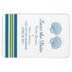 Conchas marítimas náuticas elegantes e clássicas salvam o ímã Flexi de data com um par de conchas simples e uma série de faixas em azul e amarelo marinho escuro. Este tema de praia náutica, exceto a data, pode ser facilmente personalizado com seus detalhes de casamento. Para obter mais opções de personalização, clique no botão Personalizar Ti.