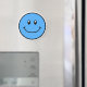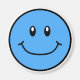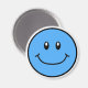 Um ímã de rosto feliz sorridente em azul.