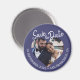 Ímã de foto azul-marinho com texto em letra cursiva moderna para salvar a data, apresentando uma janela de foto em forma de coração, fundo azul-marinho profundo e texto em letra cursiva manuscrita em branco. Este design exibe sua foto de noivado ao mesmo tempo em que apresenta claramente a data e o local do casamento em uma paleta de cores clássica e de alto contraste que se sente formal e atemporal. Ideal para casamentos, celebrações noturnas, eventos de destino ou renovação de votos com uma estética elegante e tradicional. Personalize facilmente com seus detalhes.