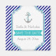 Azul marinho, listras brancas e ímã de salva datas de casamento náutico com âncora. Um design elegante com padrão de listras diagonais em azul marinho e branco, uma âncora cinza com um coração turquesa e corda e seu texto em uma moldura com uma faixa aqua. Moderno, mas com um visual vintage em certo sentido. Você pode alterar a cor do fundo e do texto escolhendo entre mais de 200 cores do gráfico de cores da Zazzle. Este design sofisticado é um modelo completamente personalizável e faz parte de um conjunto de casamento perfeito para um casamento náutico ou de praia de verão.