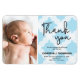 Personalize este cartão de nascimento magnético do bebê com a foto e os detalhes do seu filho. Ser um cartão magnético é uma maneira fácil de a família e os amigos exibirem e apreciarem esse momento especial. A palavra 'Tanque você' contra um moderno fundo azul e branco, padrão circular.