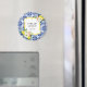 Ilumine seu espaço com este ímã de limão cítrico! Apresentando um padrão de azulejos mediterrâneos em azul naval e um buquê floral