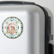 Pretty Circular Baby Girl Boy First Christmas Photo Gift Magnet Ornament. In autumn and winter colors of purple, blue, brown, and green. A festive round border surrounds the picture in the middle. Replace the photo with a picture of your own beautiful new baby boy or girl, or child. The text at the top says “Your Christmas Words Here 1” in teal. At the bottom are the words “Your Christmas Words Here 2”, in teal. Personalize this by changing the words and picture. Give as a present for a new mom at Christmas. Mama, mom, mam, mammy, mommy, mother, and your wife will love putting up this gift decoration on their refrigerator or magnetic notice board in their home office to celebrate the birth of their new baby and their first Christmas. In lovely, muted and pastel colors.
