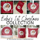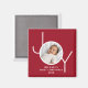 This stylish Baby's First Christmas Photo Magnet features the word "JOY" on a red maroon background.