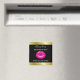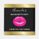Um ímã de festa de solteira (ou outro evento) com uma ilustração com lábios rosa-quente. Imagem brava e vibrante. Bordas de gradiente de ouro falsas. Colocado sobre um fundo preto.