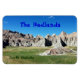 A beleza natural das terras áridas é exposta nesta foto. O Parque Nacional Badlands está localizado em Dakota do Sul e é uma maravilha geológica de erodir bordas, torres e pináculos. Bandas coloridas de estratos rochosos compõem uma visão panorâmica da paisagem robusta à medida que o sol lança sombras que enchem raízes, fissuras e fissuras. Estrias paralelas pintam a paisagem em camadas de vermelhos, castanhos, bronzeadores e cores de cinza, resultando em uma visão espetacular do recorte rochoso de rochas. O verde da pradaria mista das pradarias nacionais é visível em primeiro plano. Vestígios de nuvens brancas podem ser vistos em um céu azul claro.