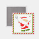 Um desenho animado do jogador de Badminton Papai Noel, segurando uma raquete.