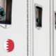 Bandeira do Bahrein. A bandeira nacional do Barém (árabe: ع ل ا ل ب ح ر ي م ن ,) é constituída por uma banda branca à esquerda, separada de uma área vermelha à direita por cinco triângulos que servem de linha serrilhada. Vermelho é a cor tradicional das bandeiras dos Estados Árabes do Golfo Pérsico. O branco está do lado oposto; os cinco pontos representam os cinco pilares do Islã.