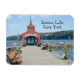 A casa vermelha no final do píer de madeira em Watkins Glen. Esta pequena cidade fica no extremo sul do lago Seneca, na região dos lagos de Finger.