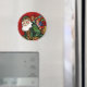 Um Papai noel descendo o ímã CHIMNEY que também tem adesivo e cartão de saudação correspondentes.