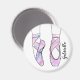 Íman redondo com calçados de pontas de bailarina clássicas em um impressão colorido com tons de rosa e roxo. Perfeito para dançarinos de balé ou amantes de balé, este elegante design pode ser personalizado com um nome ou seu termo de dança favorito.